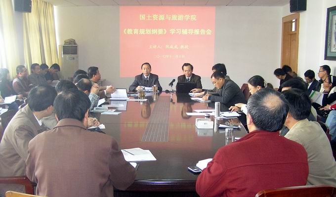 邀请教育科学学院副院长、高等教育研究所副所长阮成武教授作《教育规划纲要》学习辅导报告,学院院长焦华富主持了报告会,学院全体教职工参加了报告会。