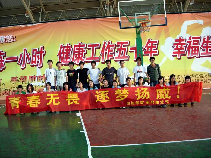 分党校第40期培训班全体成员于5月10日在花津校区体育馆内开展了“青春无畏,逐梦扬威”的阳光体育活动,抒发爱国热情,弘扬奥运精神,增强身体素质,祝福北京奥运。