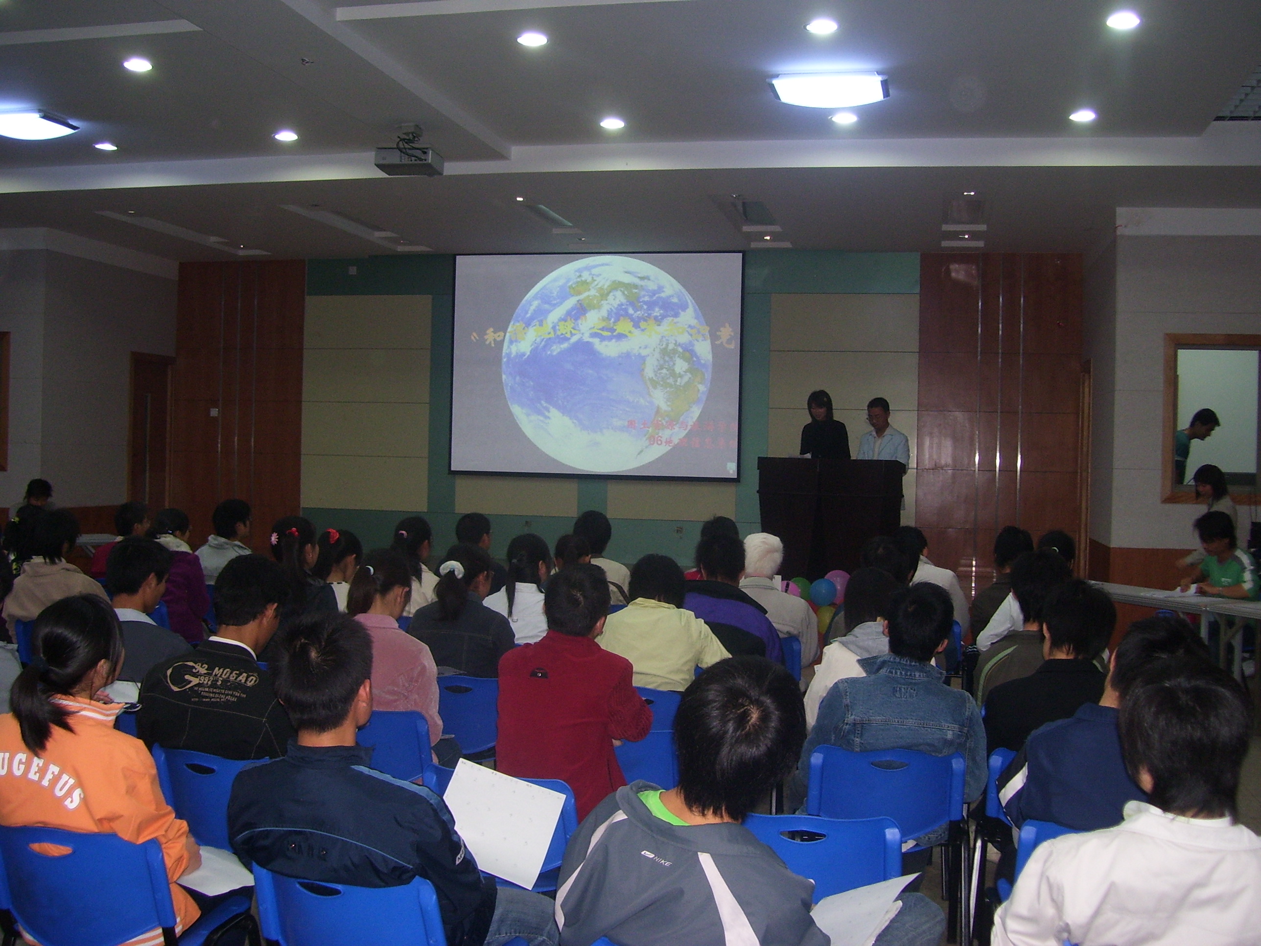 每年的4月22日是世界地球日。为了纪念今年第38个地球日,向广大师生宣传保护地球家园的相关知识,国旅学院06级地理信息系统专业学生于4月20日至22日举办了世界地球日系列活动。