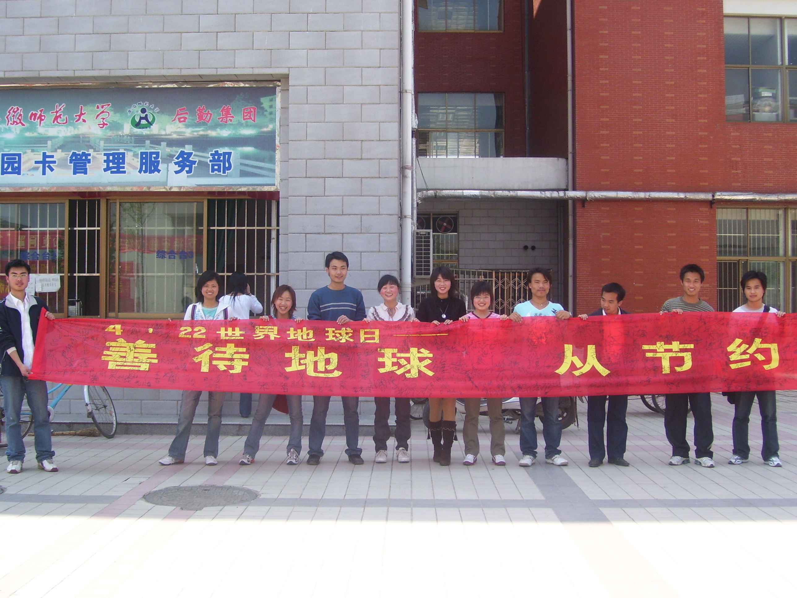 4月20日中午12:00,以“善待地球——从节约资源做起”为主题的大型签名活动在一食堂门前拉开帷幕。在十米长的横幅上,几百名莘莘学子签名纪念。