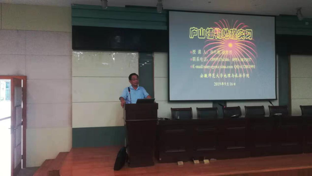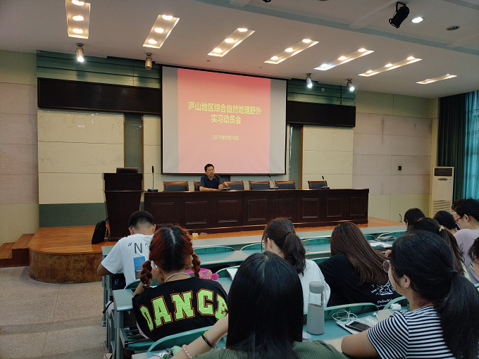 2017级庐山地区综合自然地理野外实习动员大会在院实验楼101报告厅举行。副院长曹卫东,实习指导老师孙叶根、朱永恒、徐光来,辅导员韩红豆与2017级地理科学专业全体同学参加此次会议,会议由朱永恒主持。