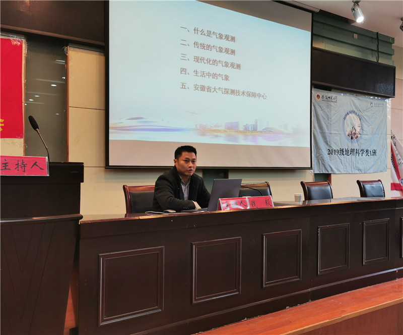 101报告厅作了题为《气象观测介绍》的专题报告。学院团委书记陈祥云,2019级地理科学类1班、2班和拔尖人才班学生,地理科普协会会员参加本次报告会。报告会由2019级地理科学大类辅导员齐小学主持。