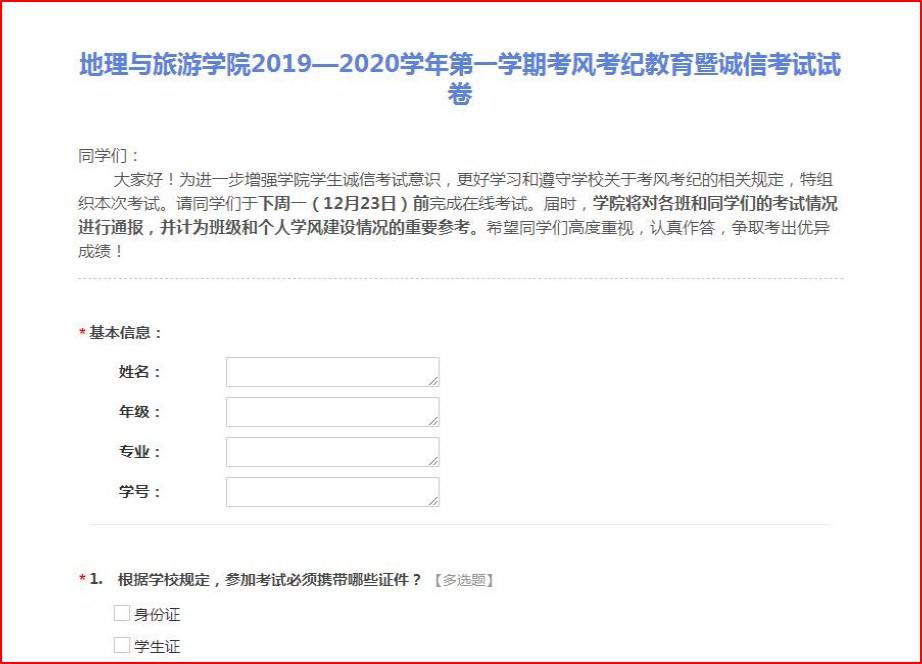 结合实施学院“考八条”制度,以诚信考试学习资料、诚信考试在线测试等举措推进期末本科生考风考纪教育。