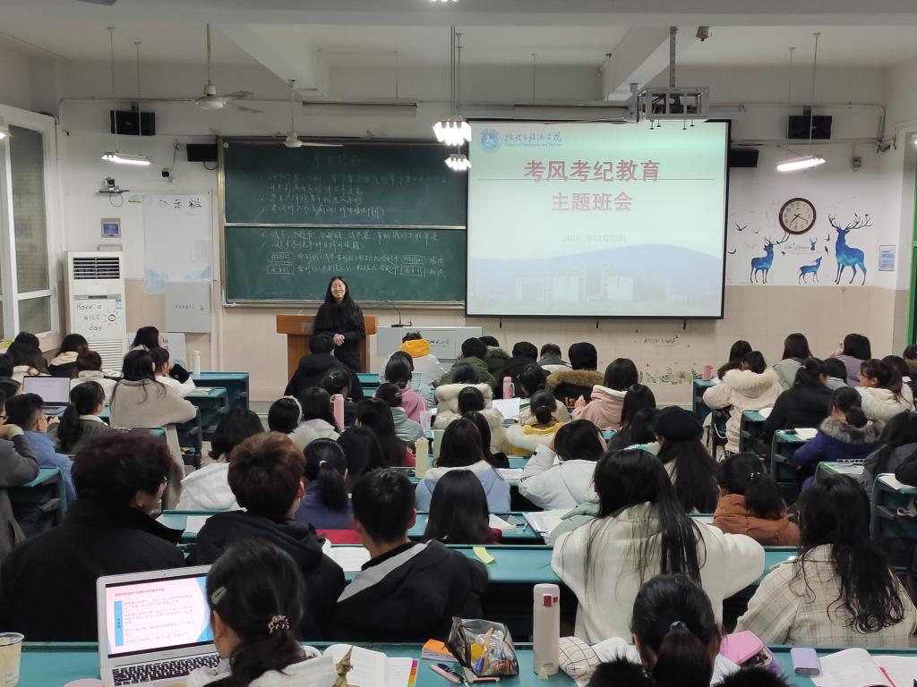 召开主题班会,夯实思想基础。为进一步强化学生诚信考试意识、规范学生考试行为,学院各年级辅导员先后召开了诚信考试主题班会,解读学校考风考纪要求和违规违纪后果,扎实推进学院考风考纪教育行动方案,形成不敢违纪、不能违纪、不想违纪的良好氛围。