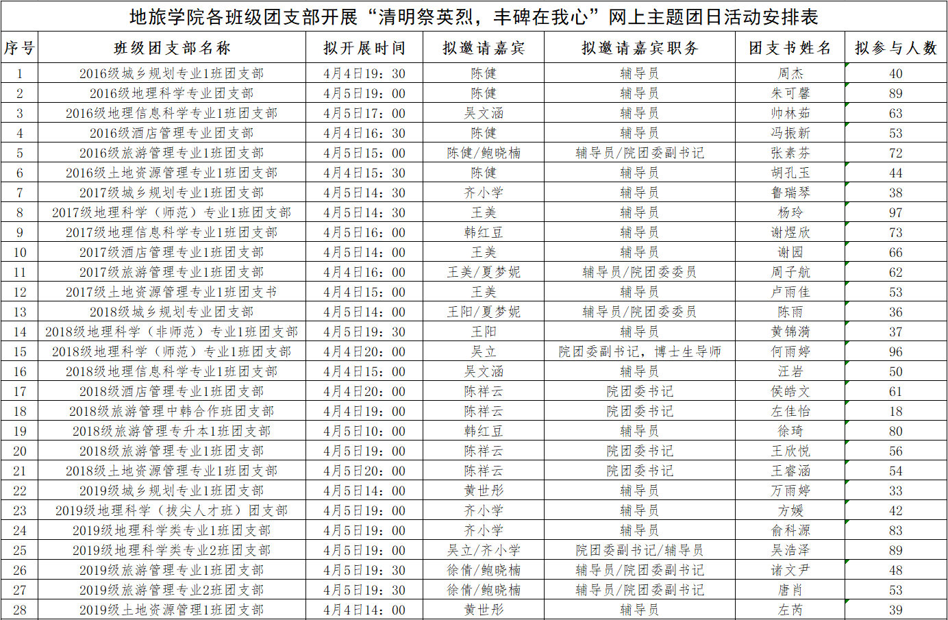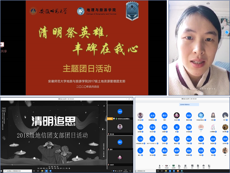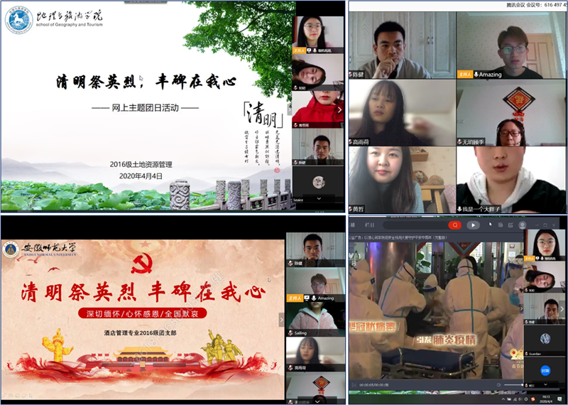 组织全体团员青年开展“清明祭英烈,丰碑在我心”网上主题团日活动。教授、博士生导师、院团委副书记吴立,院团委书记陈祥云,学院全体辅导员,院团委学生副书记鲍晓楠,学院团委委员等指导并参加活动。