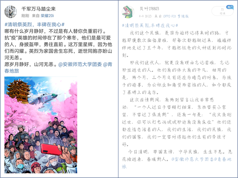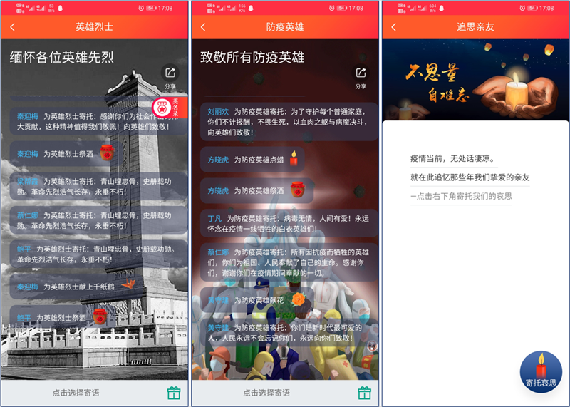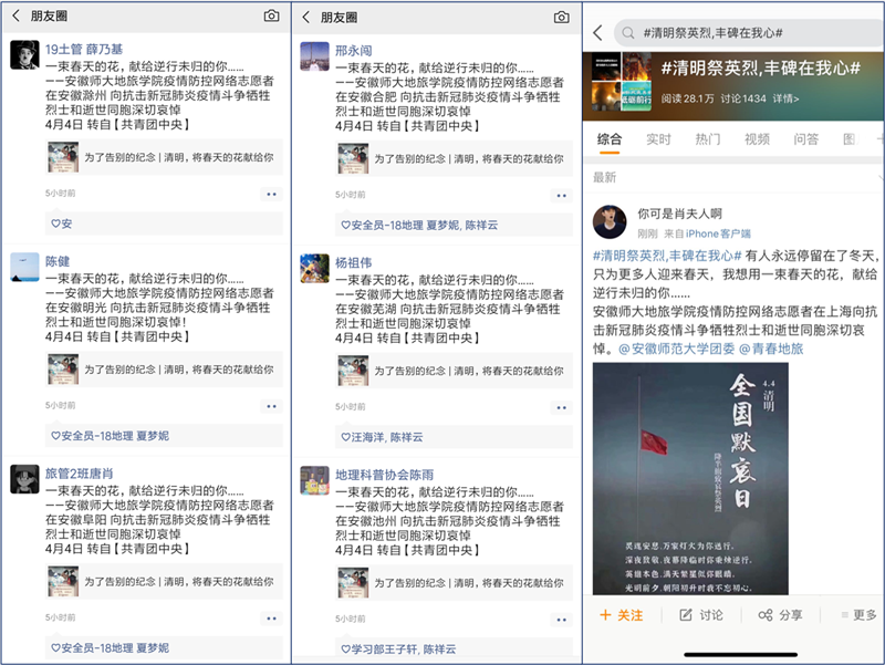 疫情防控网络文明宣传志愿者们在各地为抗击新冠肺炎疫情斗争牺牲烈士和逝世同胞深切哀悼。