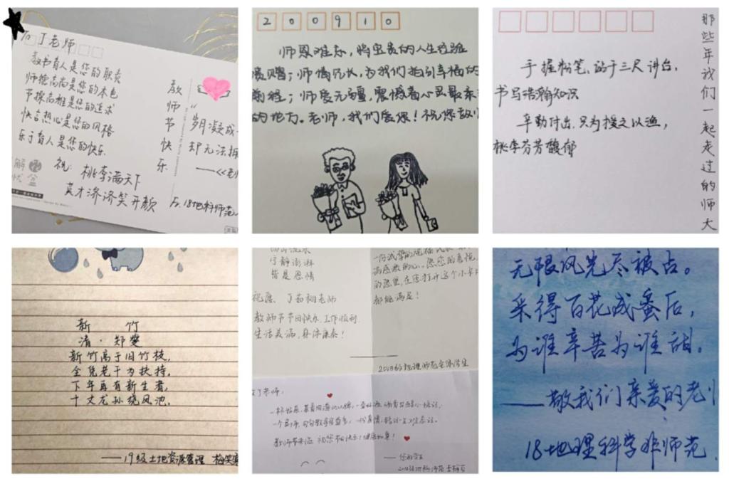 一直以来积极倡导尊师重教的院风传统,每年教师节各班级都会以不同形式表达对老师们教书育人、辛勤工作的感恩致敬活动。今年,学院在常态化疫情防控形势下,由学院团委发起、各班级积极响应,组织开展了形式多样、简朴真挚的教师节感恩系列活动,线上线下联动,进一步弘扬了尊师重教的中华民族传统美德。
