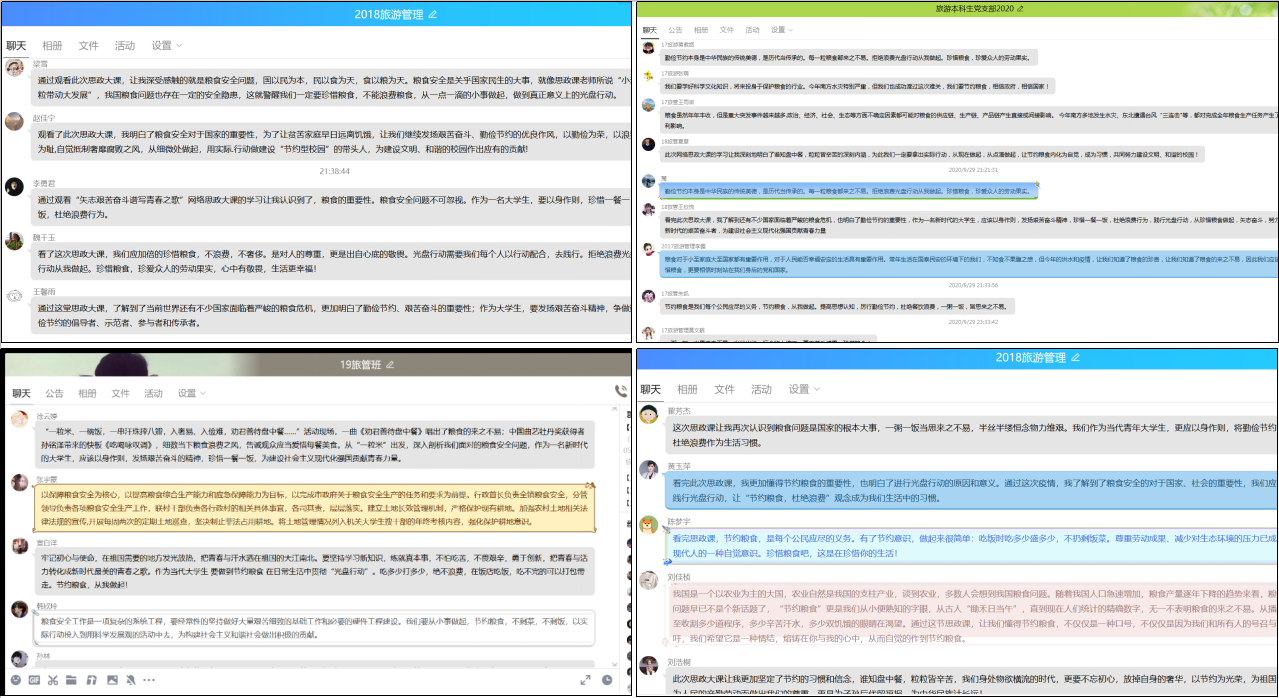 旅游本科生全体党员、预备党员及入党积极分子代表于学院行政楼四楼会议室集中观看主题思政大课,并开展交流研讨;2020级新生在教室进行集中观看学习,写下观后感;其余各年级学生分别开展自主学习,观看直播后积极在班级群分享学习心得和感悟。