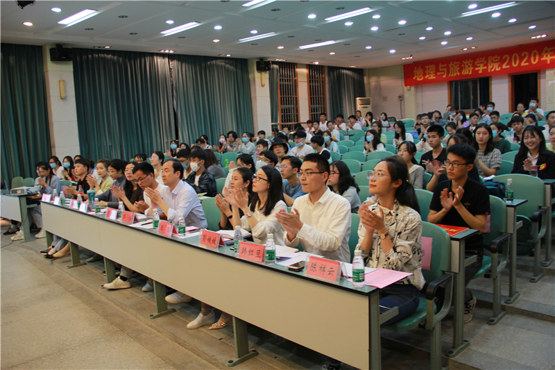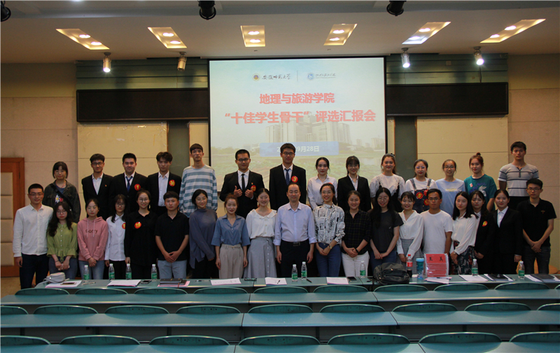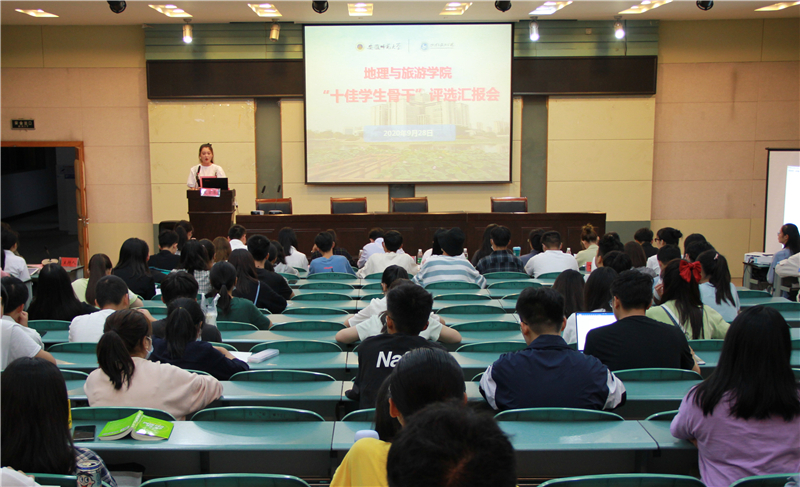 陈祥云、陶慧敏)为表彰鼓励上一学年表现突出的优秀学生骨干,发挥朋辈引领教育作用。近日,地理与旅游学院第一届“地旅风华”十佳学生骨干评选汇报会在院实验楼101报告厅举行,院党委副书记乔静,院团委书记陈祥云,院团委副书记徐倩,学院全体专兼职辅导员出席汇报会并担任评委,此外,从各班推选出的30名学生代表评审团、各年级团支部成员代表组成的100名学生观众到场聆听。