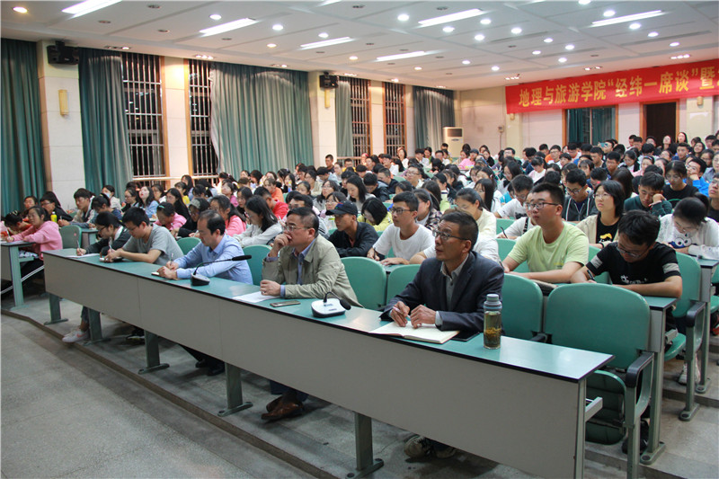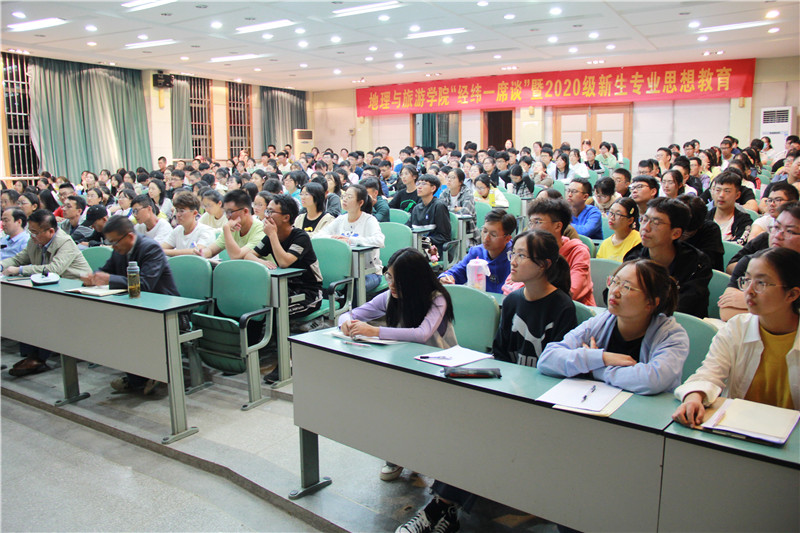 院长苏勤,院党委副书记乔静,地理科学专业负责人朱永恒教授及教师代表、新生辅导员、2020级地理科学全体新生200余人在现场聆听了报告,院党委书记贾冠忠、副院长方凤满、曹卫东及地理专业教师、研究生等在线收听了报告,报告会现场由苏勤主持。