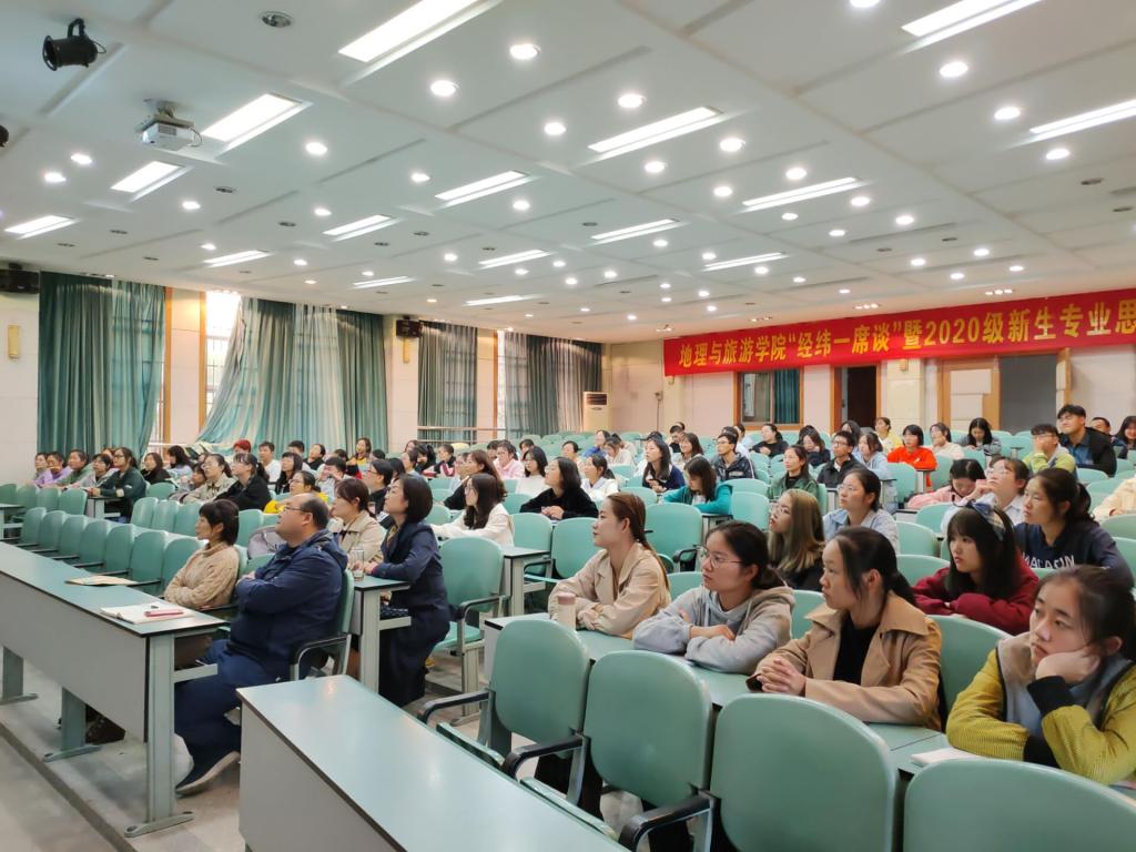 吴思慧 赵佳慧)为了加深同学们对旅游管理专业的了解,激发学生的学习兴趣,10月23日下午,学院邀请1998级旅游管理专业校友、华测检测认证集团股份有限公司医学事业部总经理兼华东大区行政副总裁张家兵做客“经纬一席谈”,为2020级新生做题为“那些年,我因旅游管理专业而结缘的故事”专题思想教育报告,旅游管理专业负责人杨钊教授担任此次讲座主持人,新生辅导员、全体2020级旅游管理专业新生聆听报告。