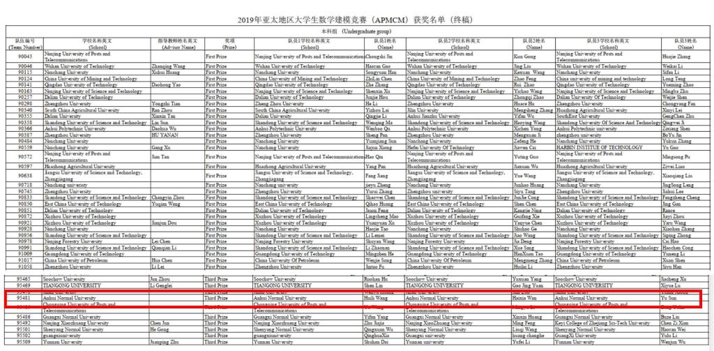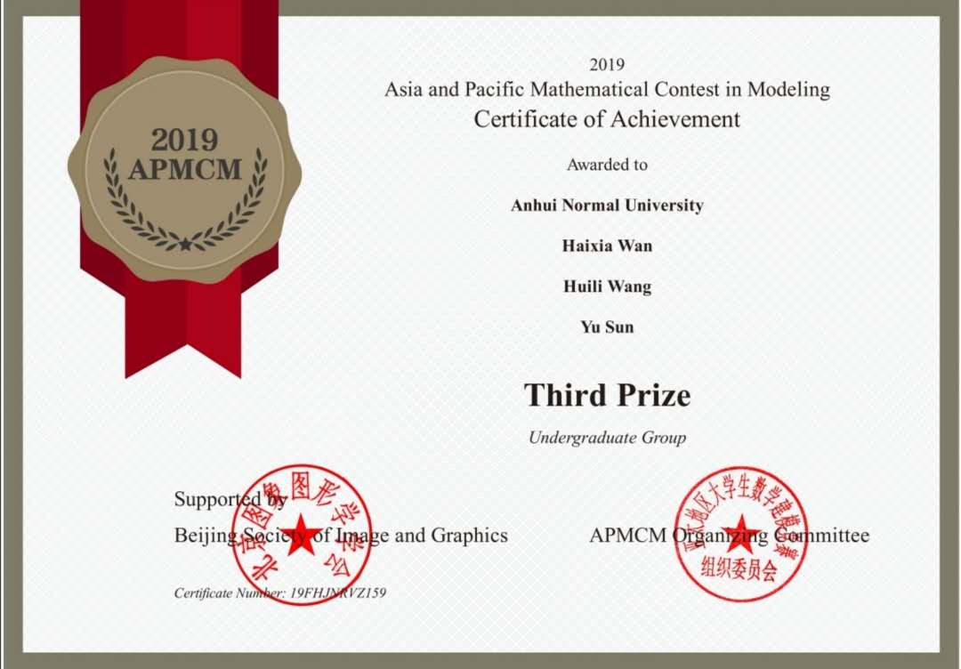 番茄小说 学子喜获2019年第九届APMCM亚太地区大学生数学建模竞赛三等奖