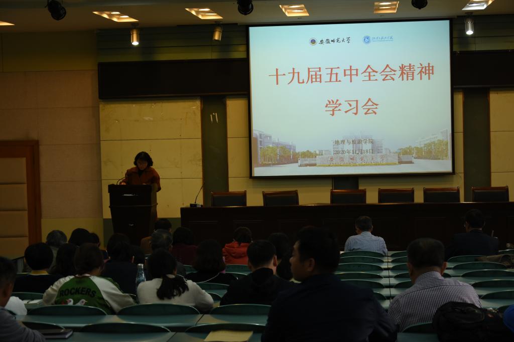 举行“学习贯彻党的十九届五中全会精神”专题学习会,深入学习习近平总书记在党的十九届五中全会上的重要讲话和全会精神,并开展研讨交流、推动贯彻落实。由苏勤院长领学,赵冬梅副院长做专题发言,学院全体教职工参与本次会议。