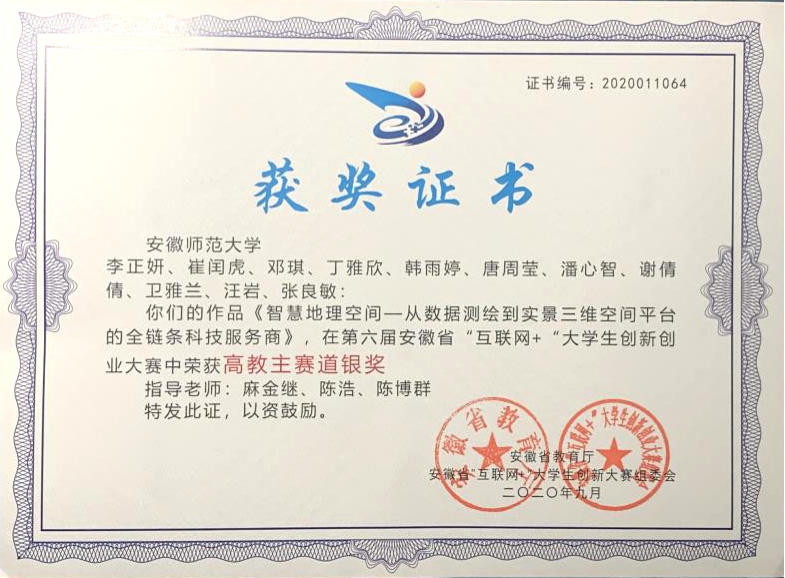 本网讯(地旅学院 李正妍)近日,由安徽省教育厅与合肥市人民政府联合主办,合肥工业大学、合肥学院、合肥职业技术学院和合肥市教育局共同承办的第六届中国国际“互联网+”大学生创新创业大赛选拔赛暨安徽省“互联网+”大学生创新创业大赛圆满落下帷幕。2017级地理信息科学专业李正妍、崔闰虎、2018级地理信息科学专业邓琪等同学,在我校番茄小说