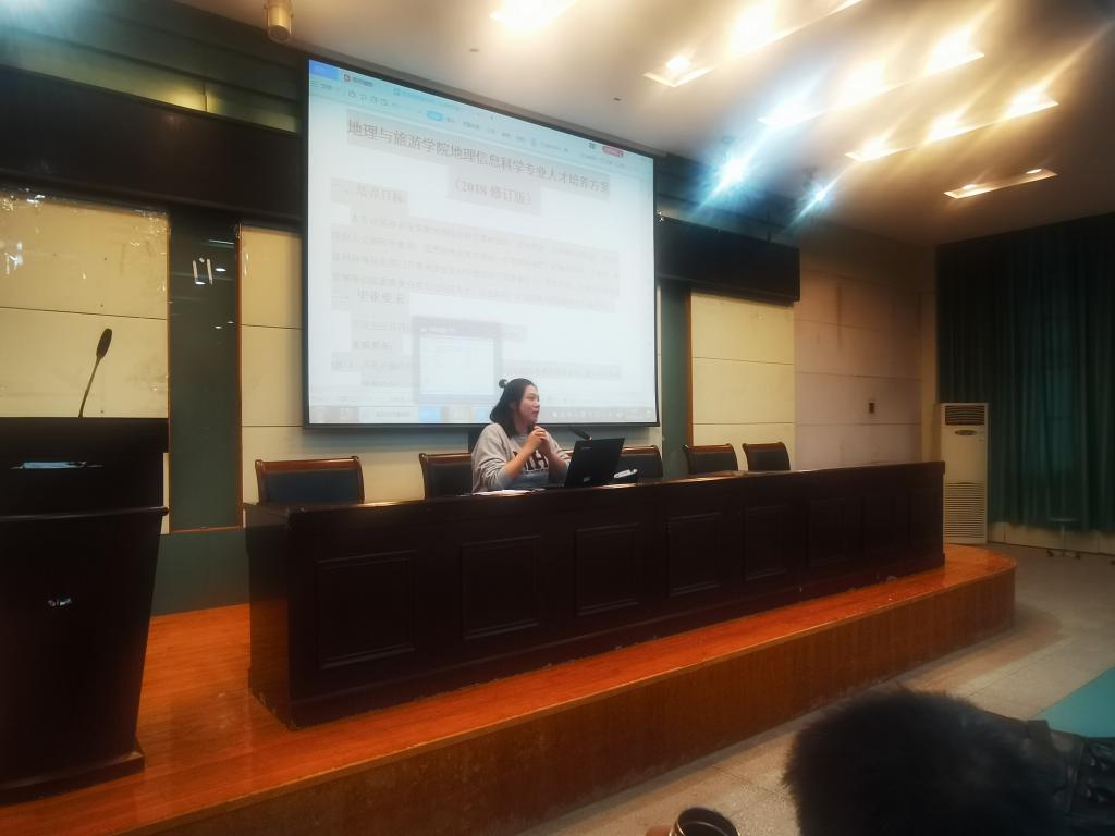 地理科学专业(非师范)人才培养方案》。齐老师首先通过大家身边的GIS应用激起了同学们的兴趣,其次向大家详细介绍了培养目标、毕业要求、学制与毕业学分、核心课程以及教学时间安排等具体内容。同时,齐老师还通过列举一些学长学姐的经历来向大家介绍了选择GIS专业后需要学习的专业课程以及一些较难的例如C++等课程,希望同学们学习时不畏惧不抵触,并指出任何一门课程都会在日后对同学们带来帮助,成为辅助我们成长成才的好工具。非师范的方向后期会培养同学们的能力,同学们会具有空间数据采集、处理、分析,运用数学建模方法和计算机技术,解决实际问题的能力,具有GIS组件式系统开发的基本能力;接受良好的科学思维和科学方法的基本训练,具有资料搜集和文献检索等能力,具有创新意识及团队协作的能力和在教师指导下初步开展科学研究的能力;会熟练掌握一门外语,具备国际视野和口语与书面表达能力,具有较强的自主学习能力、环境适应能力、自我发展能力和组织管理能力。由此可见,选择非师范也是一个极好的方向。