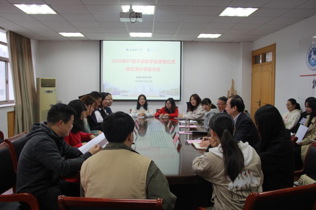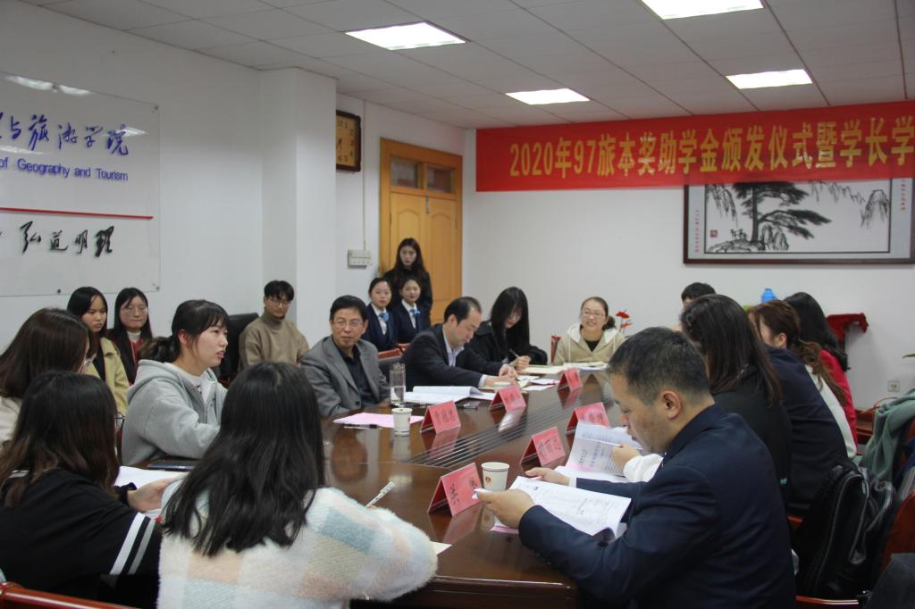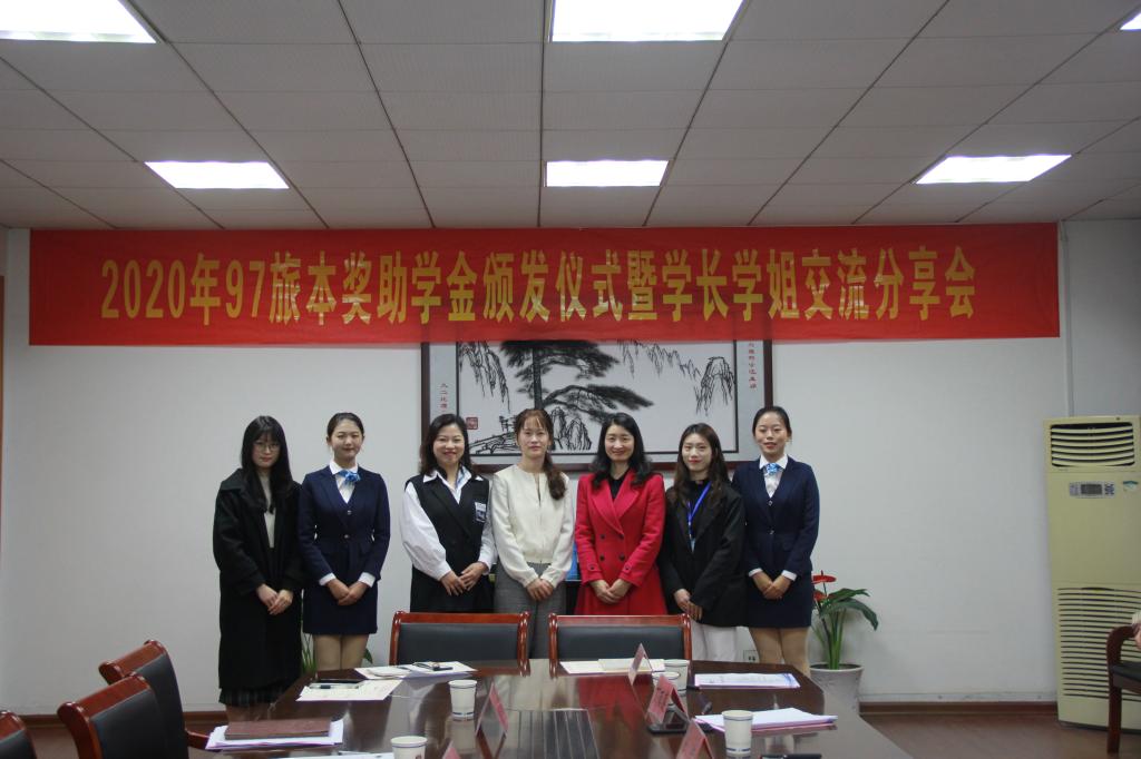 97旅本奖助学金颁发仪式暨学长学姐交流分享会于学院行政楼四楼会议室顺利举行。我校1997级旅游管理专业本科班毕业生代表窦贤琨、杜佳、胡丽达、丁雨莲、关坚,尹寿兵,校学生处处长刘晓宇,番茄小说