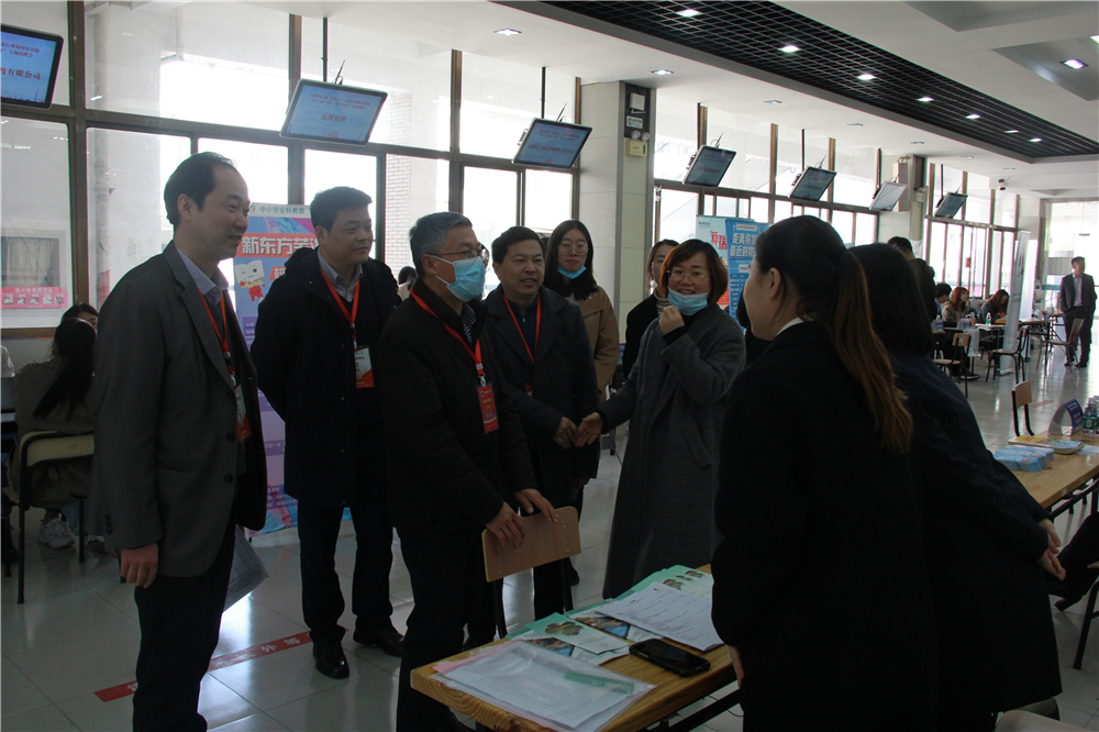 党政领导班子成员和专业负责人深入招聘现场与招聘单位负责人交流洽谈,师生代表参加活动学习感受招聘形势氛围。