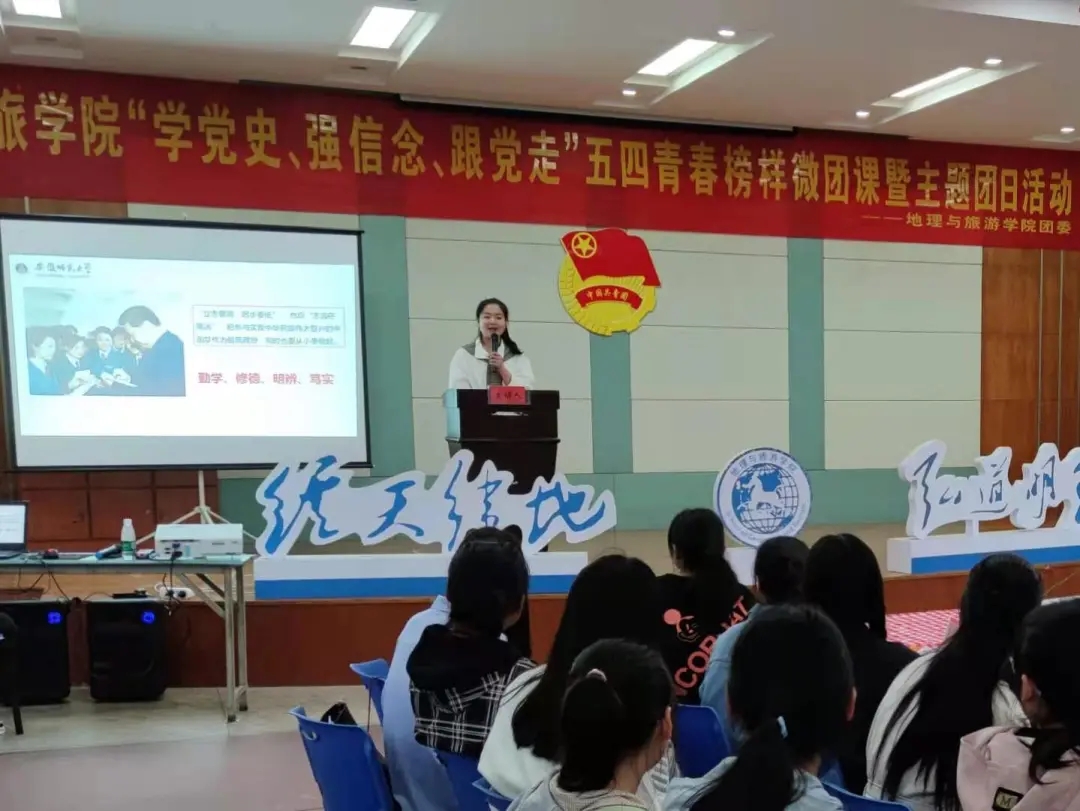 学生团委副书记、第十七届“地旅之星”十佳大学生、2018级旅游管理专业高昕茹与大家分享微团课:以奋斗之豪情,奏青春之乐章——阅读《习近平与大学生朋友们》有感。她主要结合自身分享阅读《习近平与大学生朋友们》的思考与感悟。高昕茹表示唯有充实自己,不忘初心,才能在体现社会价值的过程中获得更多的成长。她认为,作为新一代的青年,应该“坚定信仰,砥砺品德,珍惜时光,勤奋学习,努力成长为有理想、有本领、有担当的社会主义建设者和接班人,要有不怕吃苦受累、冲锋陷阵的锻炼精神,在自己的学业上要脚踏实地,走好每一步,不荒废宝贵的青春年华,为实现中华民族伟大复兴的中国梦贡献智慧和力量”。