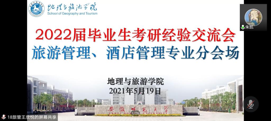 会议分为地理科学、地理信息科学、土地资源管理、城乡规划、旅游管理和酒店管理5个分会场。首先由2017级各专业学生代表从正反两面向2018级的学弟学妹们做考研经验分享,2017级考研代表分别从心态调整、备考时间安排、各科目复习方法、学习资料到学校专业选择、备考雷区、经验教训等方面开展了考研干货分享。