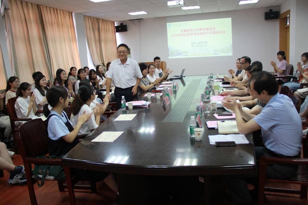 的办学成就。她指出,作为安徽建校最早的高等学府,前身是1928年创建于安庆市的省立安徽大学,在90余年的办学历程中,师大人秉承“厚重朴实、至善致远、追求卓越、自强不息”的精神,一代代师大人潜心耕耘、薪火相继,为国家培养出一大批优秀人才,在社会各行各业中表现出色,取得了不凡的业绩;进入新时代,学校正高举习近平新时代中国特色社会主义思想伟大旗帜,抢抓长三角一体化发展战略机遇,秉承“特色、开放、创新”的办学理念,大力实施校第十一次党代会提出的“2352”发展计划,奋力朝着国内一流、特色鲜明的高水平大学建设目标加速迈进,希望刘明达先生作为我校客座教授,今后能继续关心支持师大的发展,为我校教学科研、人才培养、开放办学做出新的更大贡献。