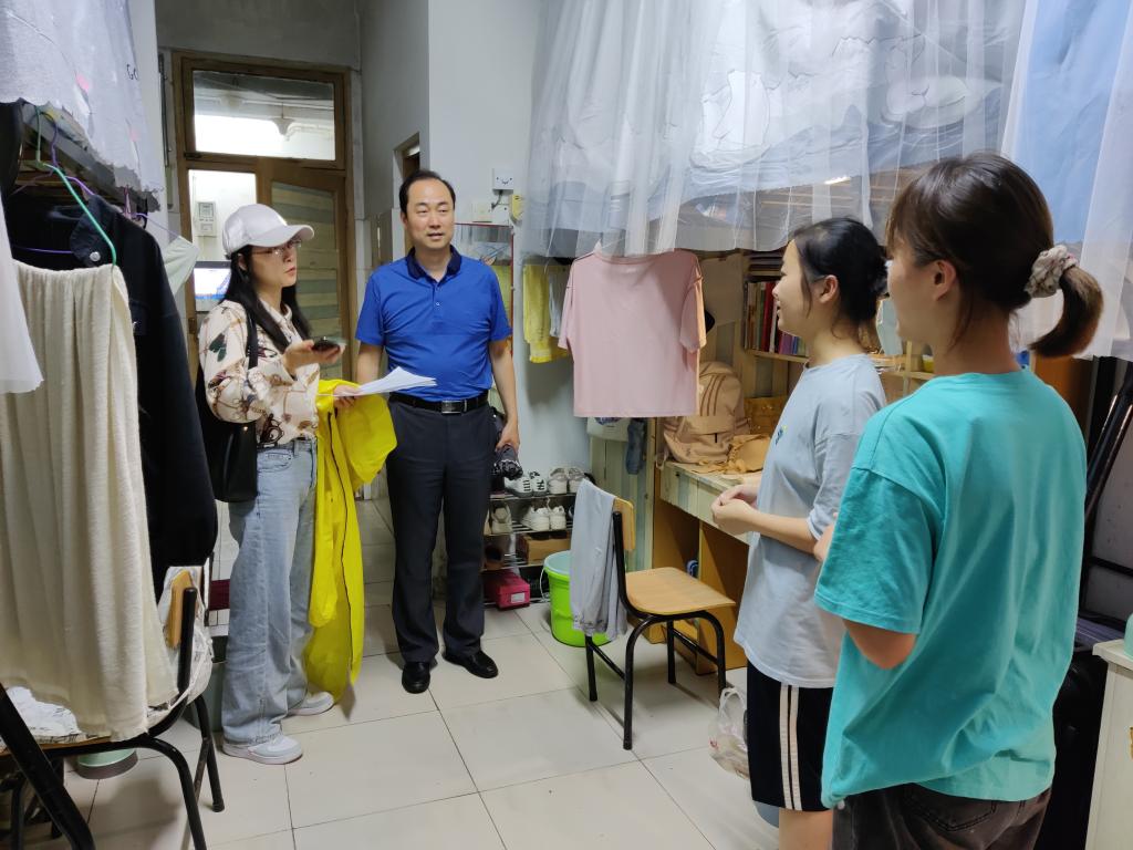 党委副书记乔静及学院各年级专兼职辅导员,深入学生寝室集中突击开展安全隐患排查,督促指导疫情防控及寝室文明创建工作。