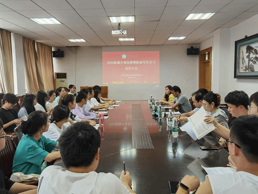 行政楼三楼会议室召开2020级城乡规划暑期皖南写生实习动员大会。会议中,各位领导老师着重强调了此次皖南写生实习的目的、建议和要求以及实习期间的安全和纪律注意事项,并希望同学们能在此次实习中提升专业能力、提高技能素养,为本次实习活动统一了思想认识和学习态度。