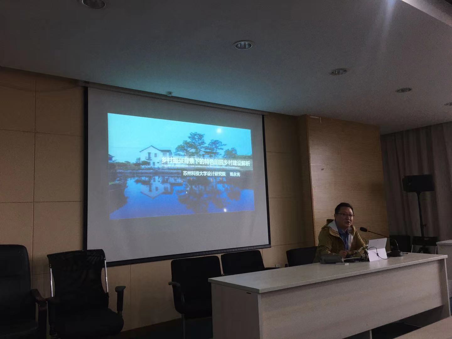 接着,苏州科技大学设计研究院副院长姚永光教授以“乡村振兴背景下的特色田园乡村建设解析”为主题,从多角度、多方面向同学们讲述了特色田园乡村的内涵,并与同学们分享了专业团队在进行乡村规划设计时的手法。