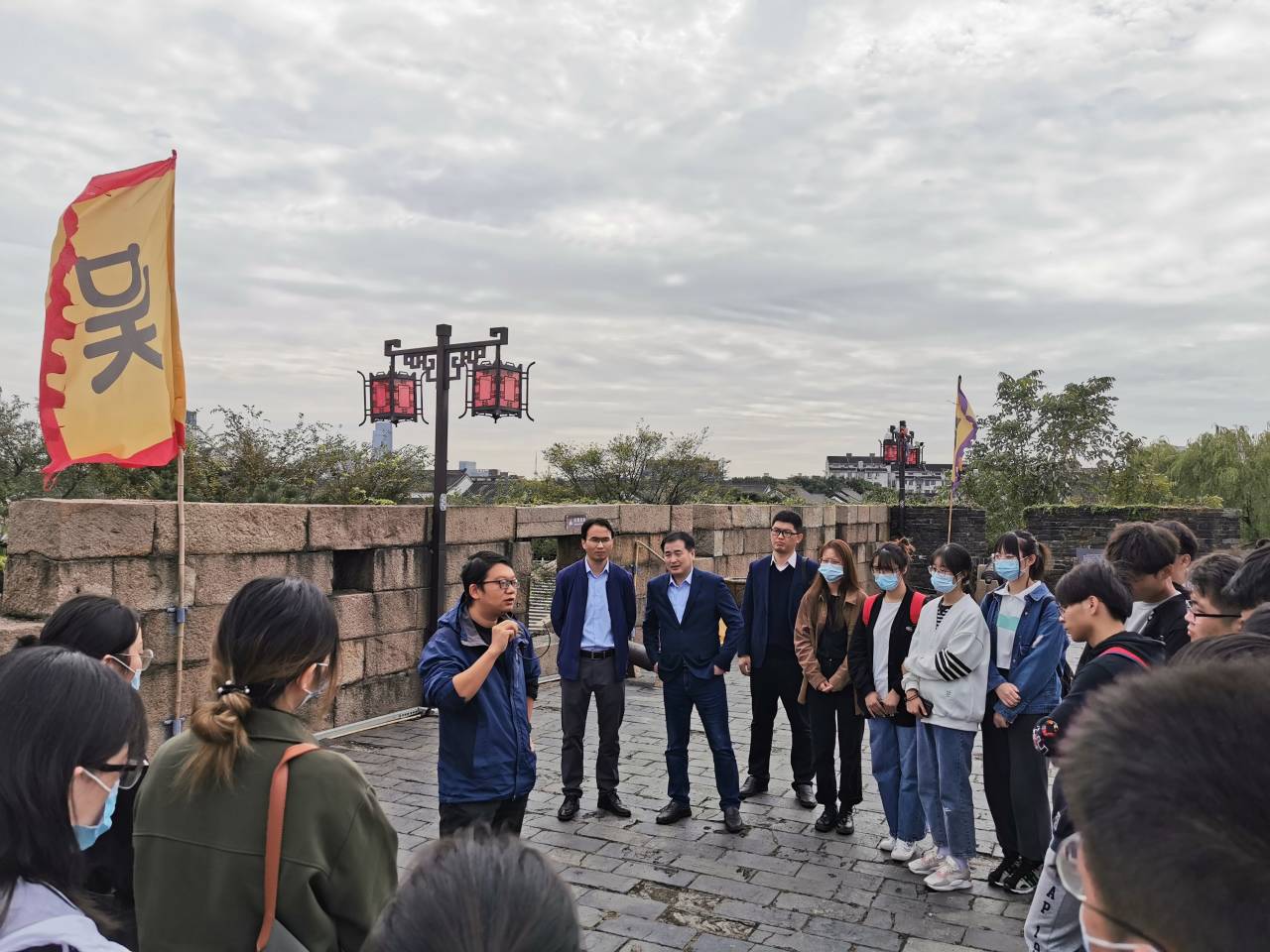 随后,同学们来到了位于苏州城西南隅的盘门,蔚然古朴的城楼、横跨京杭运河的吴门桥、临流照影的瑞光寺塔,盘门三景有着小桥流水、粉墙黛瓦,又不失春秋大气。指导老师向同学们讲述盘门的历史,引导同学们进行思维发散,并城市规划的视角深入讲述,同学们收获良多。