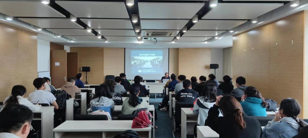 苏州科技大学建筑与城市规划学院罗超教授以“苏州古城保护与更新”为主题,分别从苏州古城特色、古城及其保护历程、历史文化名城保护规划、历史文化街区保护、历史建筑保护利用五个方面,向同学们全面系统地介绍了苏州古城的具体情况及其保护与更新的机制。