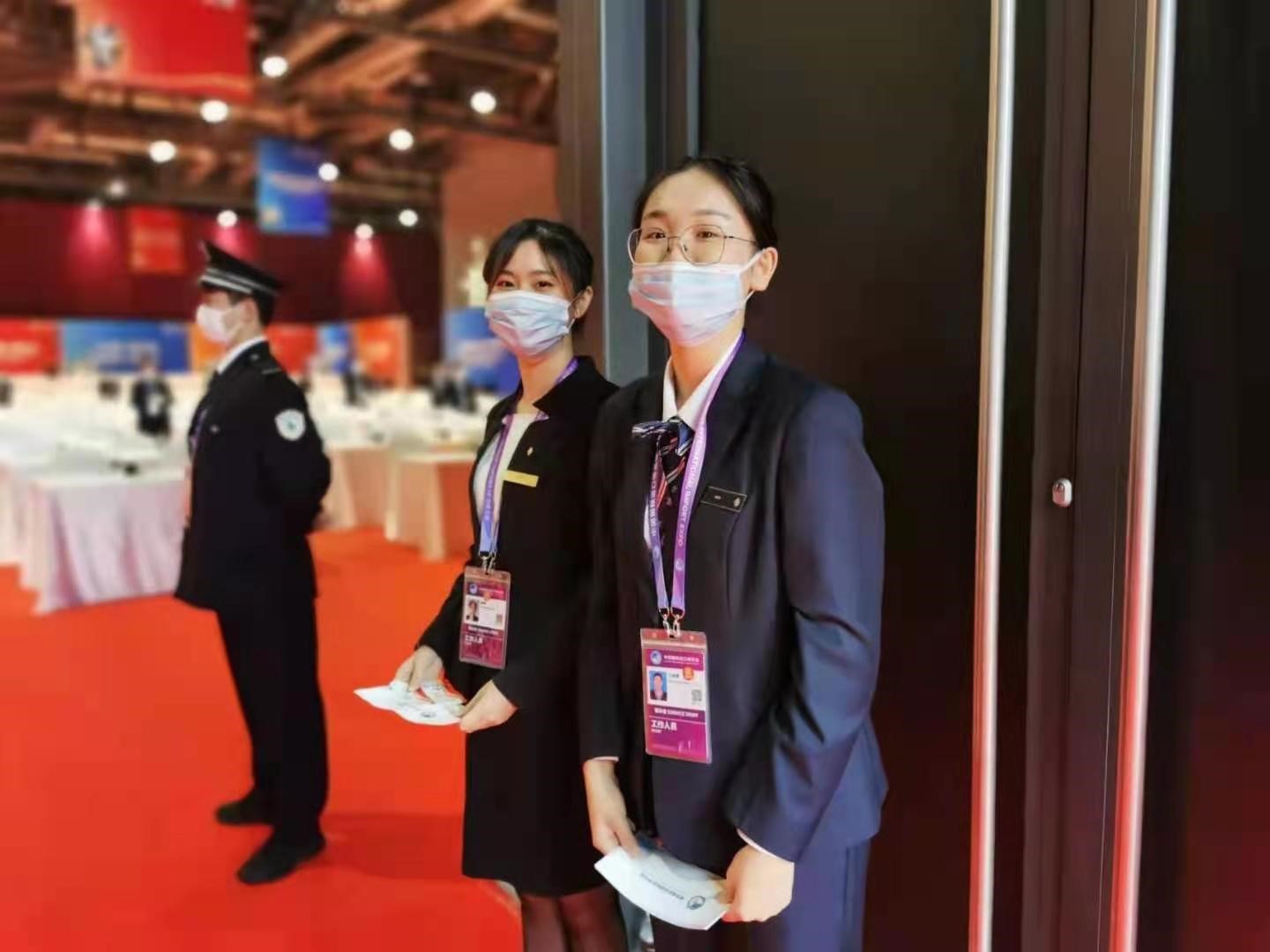 进博会期间,任梓君和周寒同学服务在酒店的前线,她们让贵宾从进酒店那一刻开始,就感受到来自酒店的热情和专业。在整个进博会服务过程中,为与会人员提供热情和专业的服务,帮助客人解决各种进博会相关问题,充分体现了高水平的专业素养和文明礼貌的待客之道。任梓君同学说道:“在进博会期间,我见识到了各个国家的参展人员,不仅锻炼了我的沟通能力,我的英语口语水平也有了质的飞跃,非常荣幸能参与进博会!”