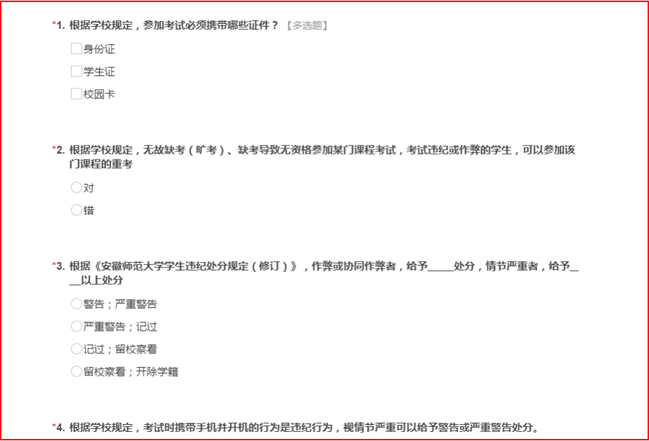 开展线上测试,强化学生诚信考试意识。进一步巩固前期考风考纪暨诚信考试教育的成果,学院扎实开展考风考纪教育暨诚信考试线上测试,并把考试成绩作为班级和学生个人学风建设的重要参考,对所有参加考试学生的成绩进行写实性通报,让学生牢固树立起诚信考试的思想意识。
