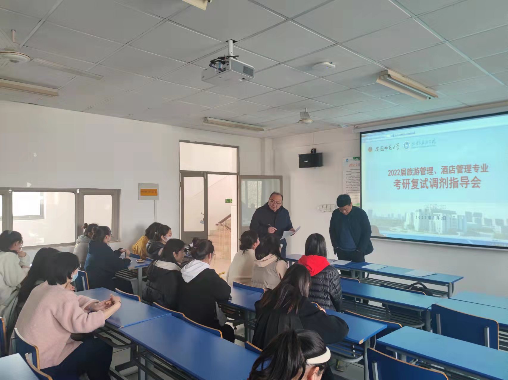 在实验楼101报告厅召开2022届毕业生春季考研复试调剂指导会。会上,付勇做有关复试、调剂的政策解读,提醒考生们关注研招网以及所报考院校官网发布的信息,总结了考研调剂的相关注意事项及调剂的过程中可能涉及的问题,为即将进行复试或调剂的考研学子指明了方向。方凤满鼓励到场考研学生,为大家的坚持“点赞”,希望各考生能在较为严峻的考研形势下保持良好的心态,做好应对复试与调剂的充分准备。曹卫东结合往年指导学生考研和调剂的经验,向同学们介绍了番茄小说