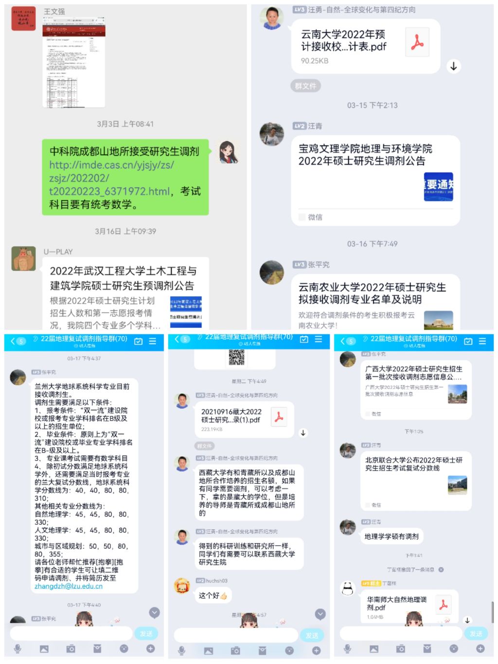 根据专业划分为地理、地信、旅游酒店、土管4个分会场。各分会场邀请学院领导、系主任、专业教师等进一步为考研学生进行复试备考、调剂指导以及鼓劲加油。学院往届优秀考研学子在总结自身考研、调剂经历的基础上,通过线上线下相结合的方式为母院学弟学妹做经验分享,充分发挥校友资源在促进考研中的有效作用,激励同学们走好自己的“研途之路”。