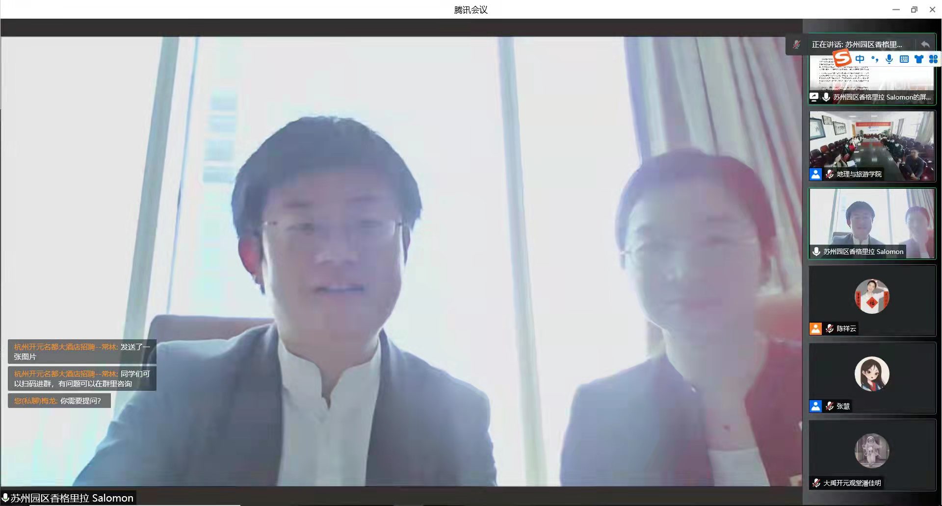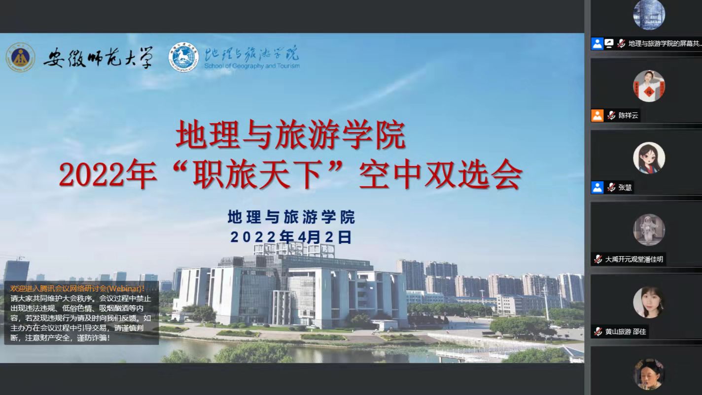 在学院行政楼三楼会议室及腾讯会议平台举办2022年“职旅天下”空中双选会。本次双选会采取企业线上宣讲,学生线上+线下参会模式,会议由毕业班辅导员陈祥云、张慧主持。两场双选会共计14家用人单位参会,提供就业岗位200余个,学院300余名毕业生参加求职应聘。