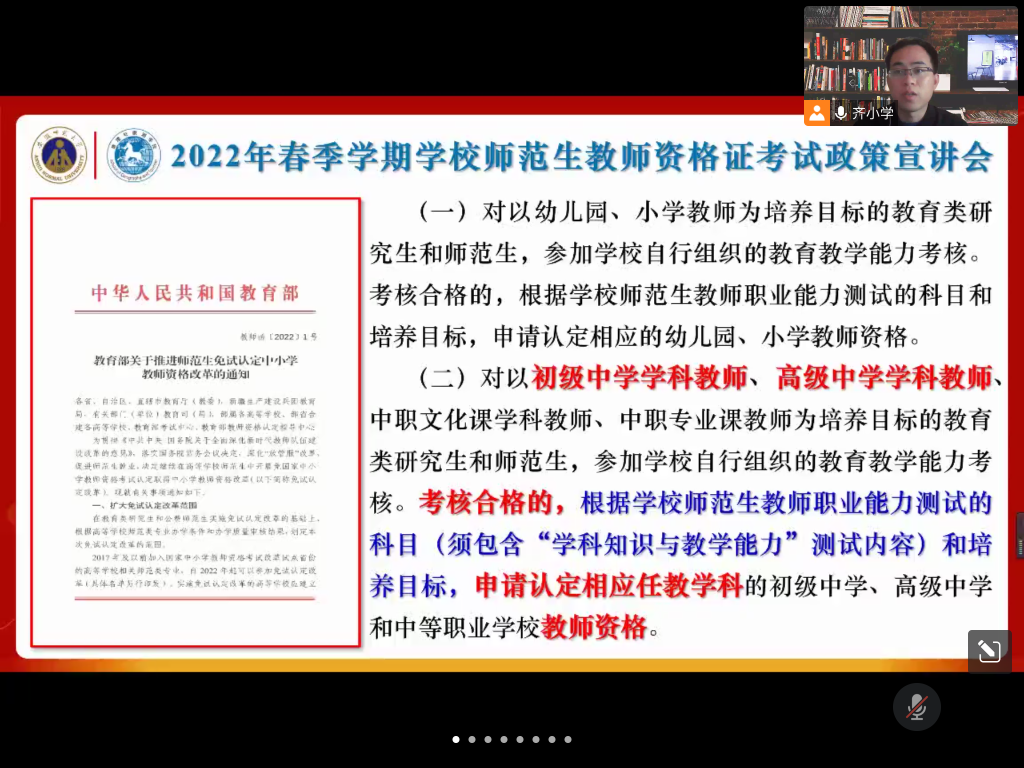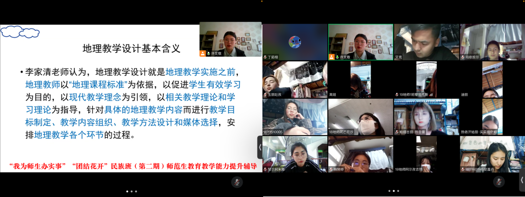 此外,针对少数民族学生,特别是毕业班边疆地区定向培养学生教师技能薄弱等问题,学院积极回应学生诉求,紧紧抓住学校师范生教师资格证免试认定改革校级考试等契机,迅速启动“我为师生办实事”“团结花开”民族班(第二期)师范生教育教学能力提升辅导,为每一位边疆地区少数民族学生配备“朋辈帮扶”小导师,进行一对一精心辅导。