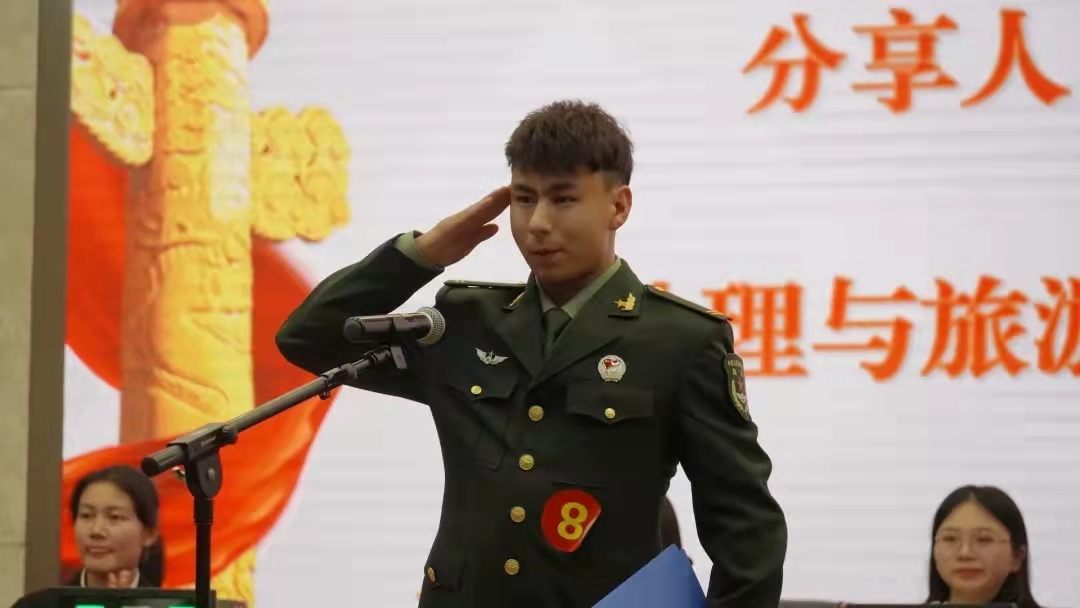 2020级地理科学(师范)专业本科生阿卜来提·阿卜力克木怀着一腔热血,以“到祖国最需要的地方去”的信念参军入伍,成为我校新疆维吾尔族在校大学生中首位应征入伍青年。入伍后,他暗下决心:“一定要当一名优秀军人,不负党恩,不负青春!”
