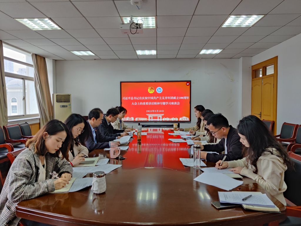 在学院行政楼四楼会议室召开习近平总书记在庆祝中国共产主义青年团成立100周年大会上的重要讲话精神专题学习座谈会,学院党委副书记乔静、全体专兼职辅导员参加会议。会议由乔静主持。