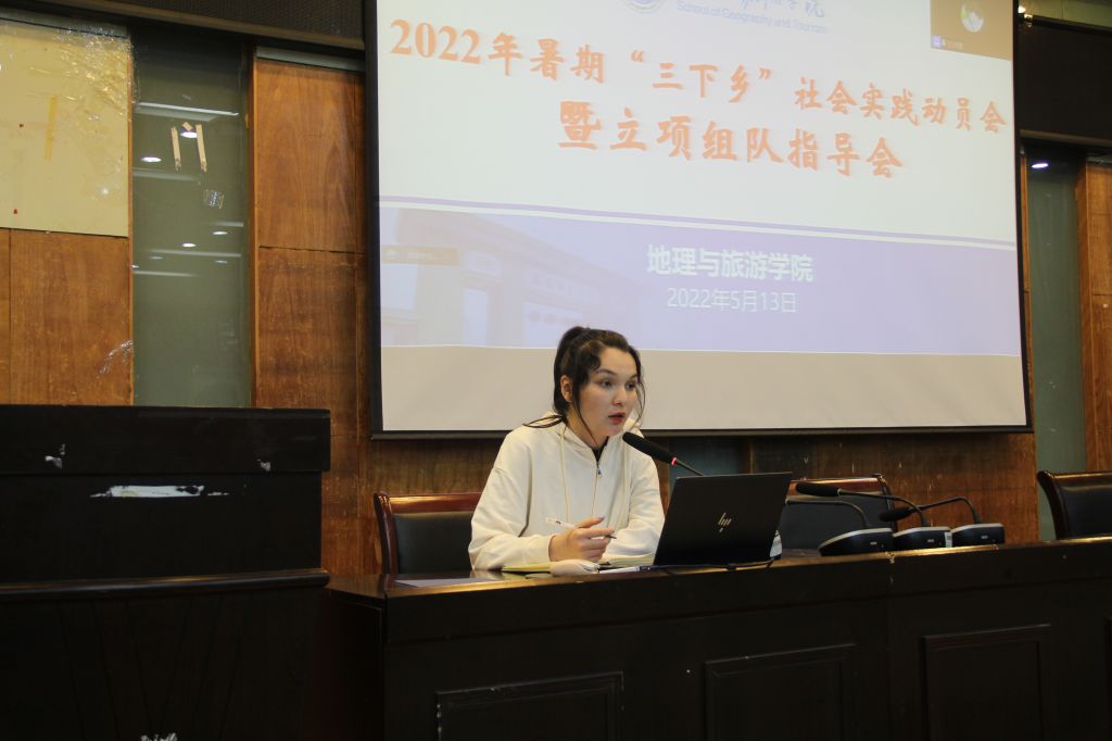 在院实验楼101报告厅举行2022年暑期“三下乡”社会实践动员会暨立项组队指导会。2020级、2021级本科生及研究生各班级班长、团支书,有意向组建暑期社会实践团队的负责人等参加线下会议,各班级学生代表通过腾讯会议平台线上参会。安徽省2021年暑期社会实践优秀调研报告一等奖团队负责人、2019级旅游管理专业董婷,“情系川皖·圆梦巴蜀”山区留守儿童支教团队负责人、2020级地理科学(师范)专业苏热叶受邀参会。会议由番茄小说