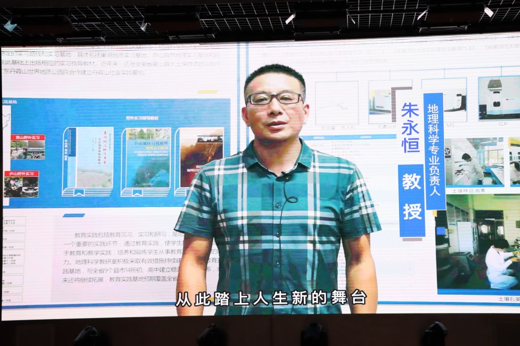 旅游管理专业教授、博士生导师杨效忠作为教师代表发言。他通过毕业微课的形式为全体毕业生讲授了大学的最后一课,表达了作为师长对学生的殷殷嘱托和满满祝福,希望同学们牢记“门”“道”“缘”“中”“慧”五个字的价值意义,以有限的生命做有限的事情,实现无限的价值,坚持修学和修行相结合、信念坚定和情感炽热相结合,在广阔天地实现大有作为,在不忘初心中做到方得始终。