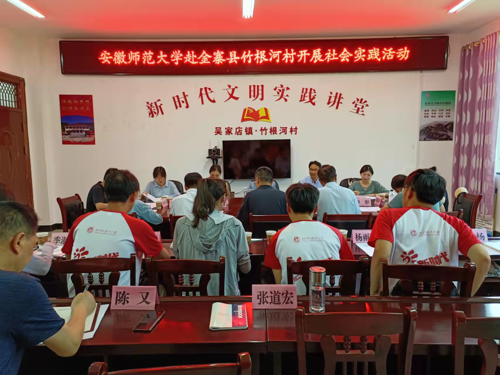 赴金寨县吴家店镇旅游规划见面会、校外实践基地授牌仪式在金寨县吴家店镇竹根河村党群服务中心会议室举行。