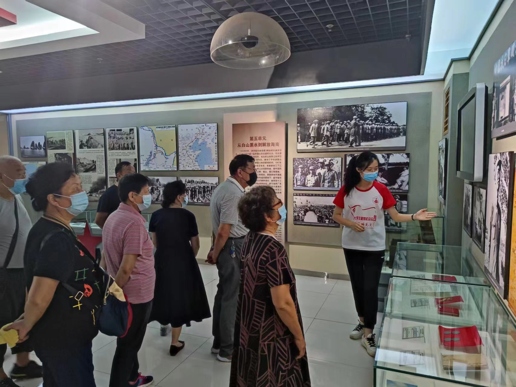学生团委副书记、2019级旅游管理专业的本科生林静在金寨县革命博物馆的序厅内用洪亮清晰的声音流畅地向游客们做着讲解,她也是今年暑期“三下乡”社会实践团队——“红色大别山 青春信仰路”赴皖西革命老区文旅融合助力乡村振兴调研实践团队的一员。