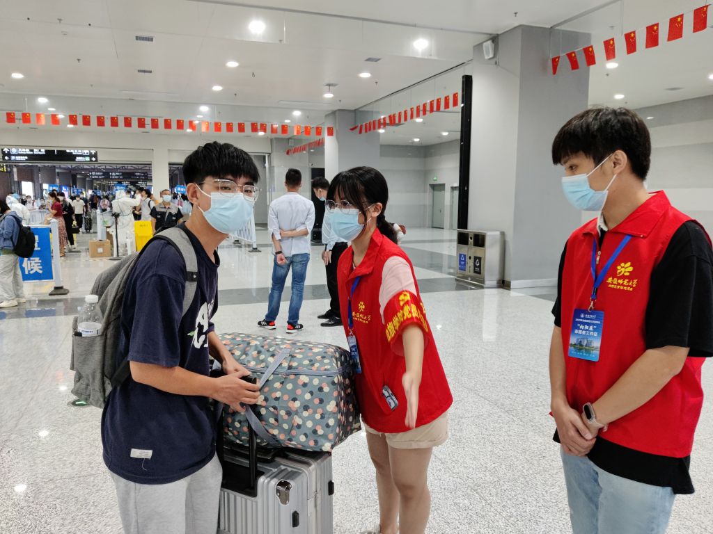 组织实施“五微五计划”学生党员先锋领航工程,充分发挥党员模范带头作用,开展火车站接站、快递点搬运行李、学校大门引领伴行、迎新现场答疑解惑等实践服务活动,同时招募组织近150名志愿者分别在报道处、新生寝室、后勤机动、宣传指引等环节进行志愿迎新工作。在迎新现场,志愿者们统一着装,佩戴口罩,积极主动为新生搬运行李、引导路线;学院各部门各司其职,分工合作,在彼此配合下,迎新工作有序进行。
