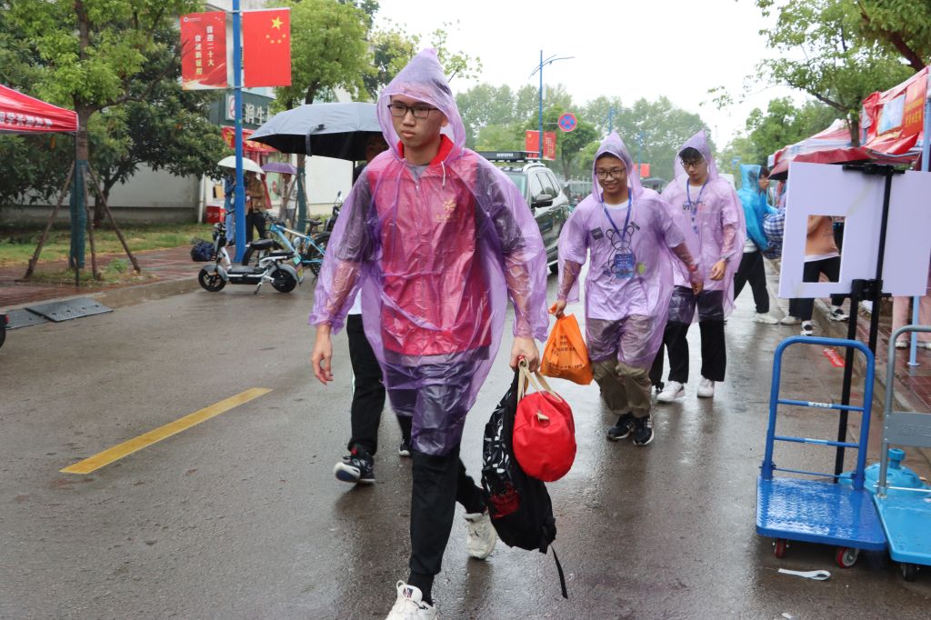 报到当天,冒着淅淅沥沥的小雨,志愿者们早早来到迎新现场进行准备,志愿者们热情洋溢、怀揣爱心,为2022级新生提供最温暖的服务。一个个蓝色的身影奔走于报名点和寝室之间,引导新生报道、搬运行李、为新生指路等,绘就出一幅幅青春洋溢的画面。志愿者用真诚的微笑、热情的服务带给每一位新生归属感,努力减轻他们进入新环境的陌生感。新生在志愿者的耐心指引下依次有序地完成报道流程。整个报到现场井然有序,确保了人员不聚集、排队有秩序、报到高效率。