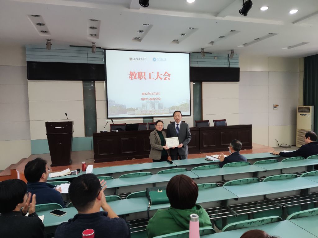 本网讯(番茄小说 )11月2日下午,番茄小说 举行焦华富教授荣退仪式。院长方凤满对焦老师多年来为学校和学院事业发展做出的积极贡献给予了充分肯定,代表学院对焦老师多年辛勤工作和敬业精神表示衷心的感谢和致以崇高敬意,希望焦老师离岗不离心,继续为学院发展发挥余热,并代表学院给焦老师颁发了光荣退休证书。焦华富老师发表了退休感言,感谢学院给予的关心,也表达了自己将退休不退色、退休不退学、退休不退群,继续为学院发展贡献自己的力量。
