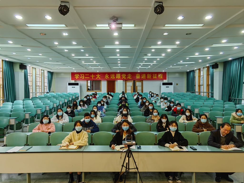 党委副书记乔静、本科生党支部书记、辅导员、学院“团结花开”民族班学员及全体少数民族学生聆听报告。专题报告由乔静主持。