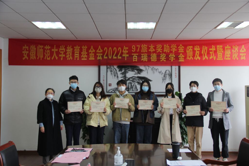 在学院行政楼四楼会议室举行2022年97旅本奖助学金、百瑞德奖学金颁发仪式暨座谈会,院党委书记贾冠忠、院长方凤满、院党委副书记乔静、院团委副书记吴文涵以及各位获奖学生代表出席此次会议,会议由地信地理(非师范)本科生党支部书记、院资助工作负责人彭媛媛主持。