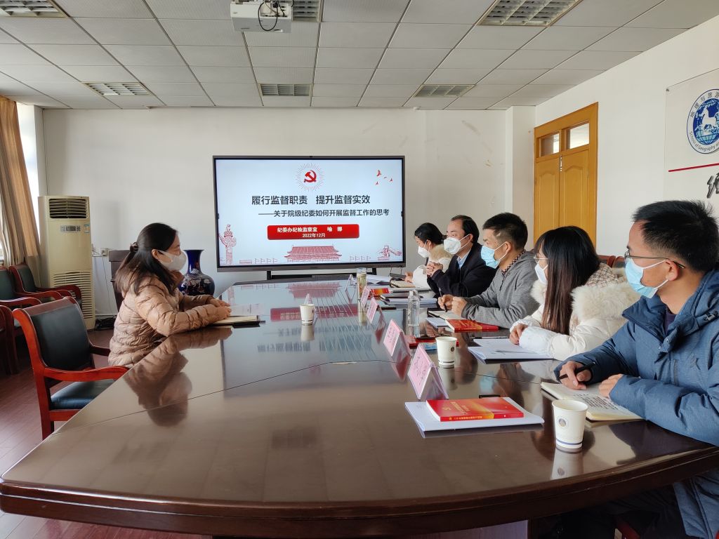 专题培训开始前,乔静带领全体纪委委员深入学习十九届中央纪律检查委员会向中国共产党第二十次全国代表大会的工作报告、中国共产党第二十次全国代表大会关于《中国共产党章程(修正案)》的决议、中央政治局常委、中央纪委书记李希在二十届中央纪委常委会集体学习时的讲话等重要精神,全面学习学校纪委落实省委《关于加强对“一把手”和领导班子监督的若干举措》的主要任务清单全文。他指出,成立院级纪委是新时代加强高校基层党组织建设,进一步完善学校党的纪律检查工作体制机制,推动全面从严治党向基层延伸的重要举措。全体纪委委员要深刻认识成立院级纪委的重要意义,深入学习贯彻党的二十大精神,全面贯彻习近平新时代中国特色社会主义思想,深刻领悟“两个确立”的决定性意义,增强“四个意识”、坚定“四个自信”、做到“两个维护”,聚焦监督主责、突出工作重点,准确把握院级纪委在学院全面从严治党、推进党的建设中的职能定位、重要职责,深入思考和系统谋划纪检监察工作重大问题,不断增强工作的系统性、科学性、创造性,为实现新时代新征程党的使命任务提供坚强保障。