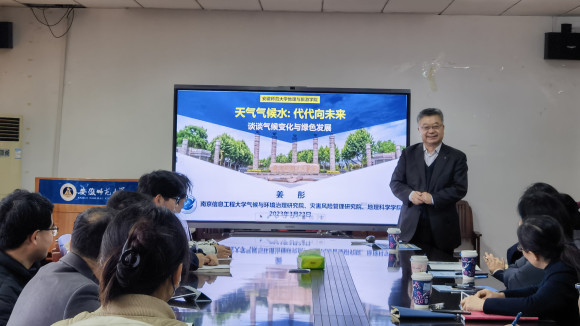 ,姜彤围绕2023年世界气象日“天气气候水,代代向未来”的主题,作了题为“天气气候水:代代向未来——谈谈气候变化与绿色发展”的学术报告。报告由院长方凤满教授主持,学院相关专业教师、研究生和本科生参加了本次报告会。