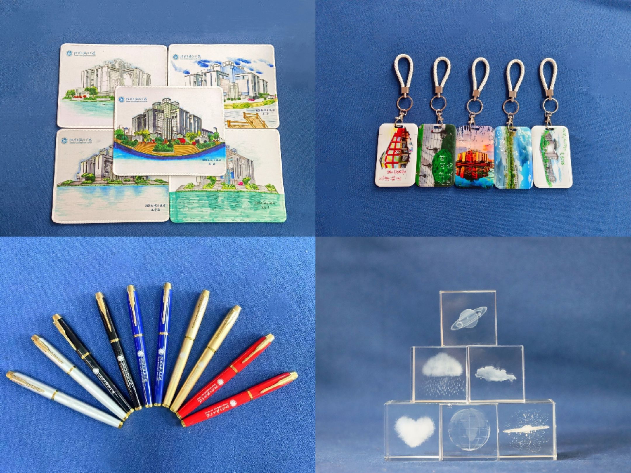 在前期精心设计了活动奖品,为50幅获奖作品的作者准备了地理气象主题摆件,邀请2021级城乡规划专业的同学们绘制校园特色景点,并将图案印制成鼠标垫、校园卡套、明信片、签字笔等文创奖品,用于鼓励报送作品的同学们和现场参与知识问答通关的学生。
