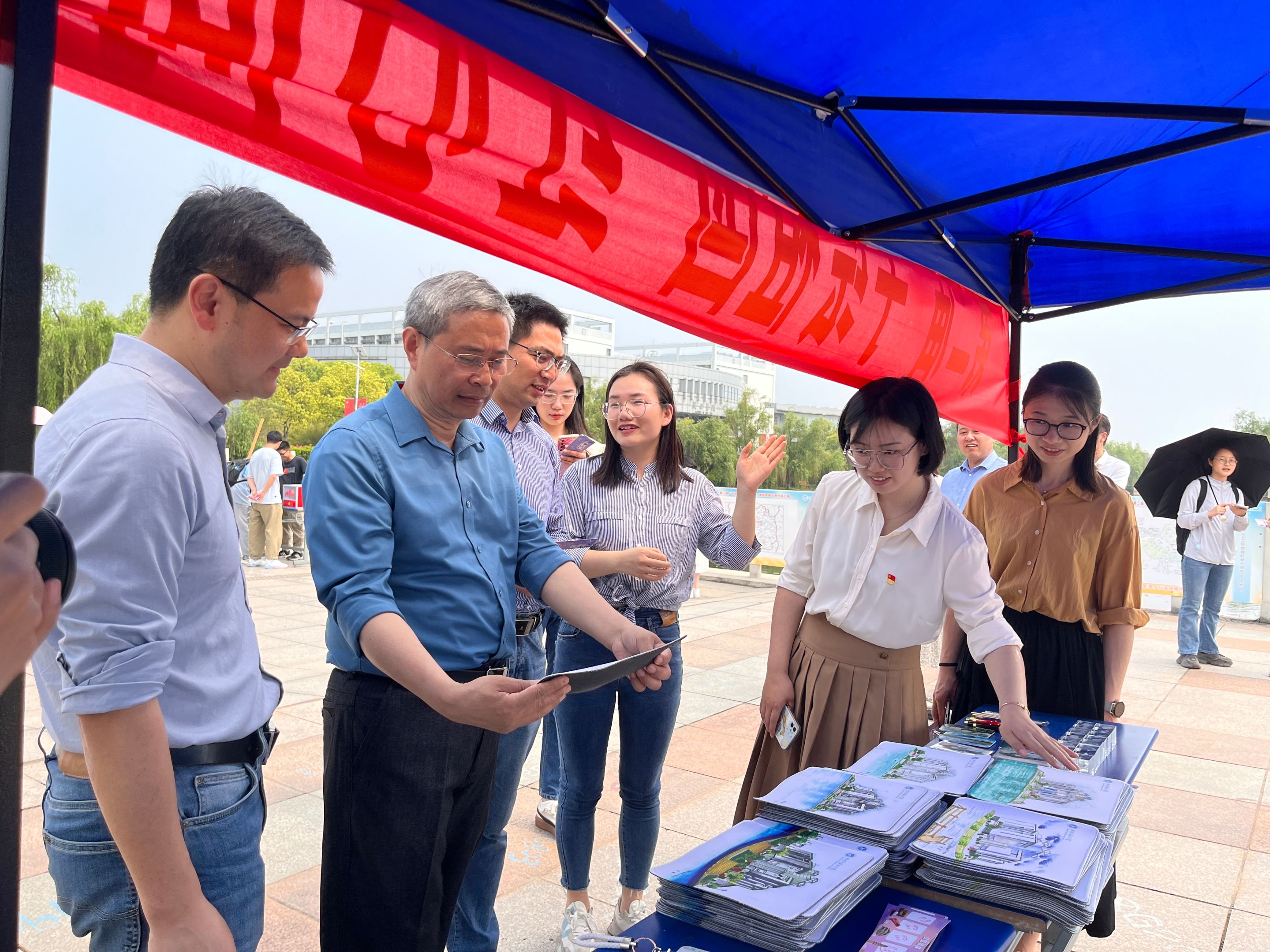 党委副书记付勇等来到花津校区九曲桥前,现场参观优秀手绘作品。